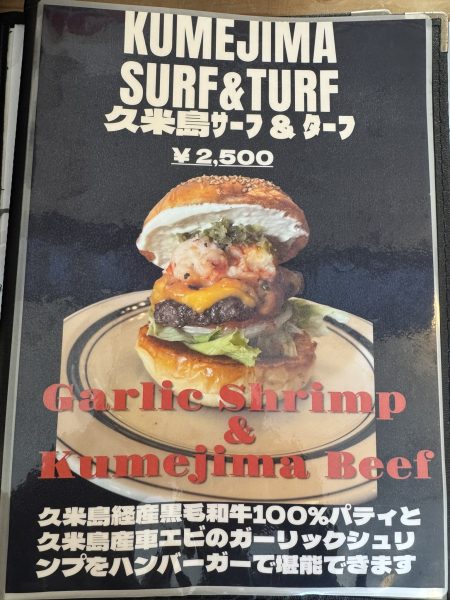 この度、久米島産車海老のガーリックシュリンプと久米島産黒毛和牛のパティが一緒に食べられる「久米島サーフ&ターフ」が販売されました。