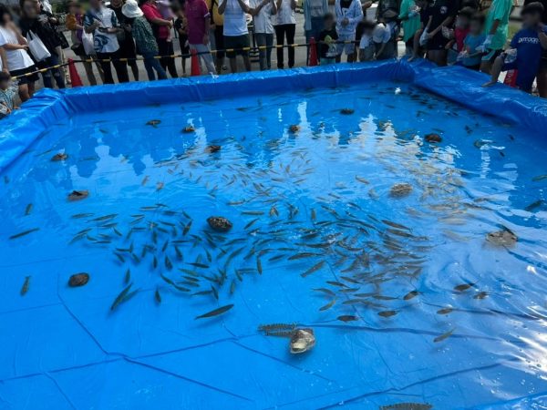 特に人気なのが子供達が参加できるおさかな・えびの掴み取りです。