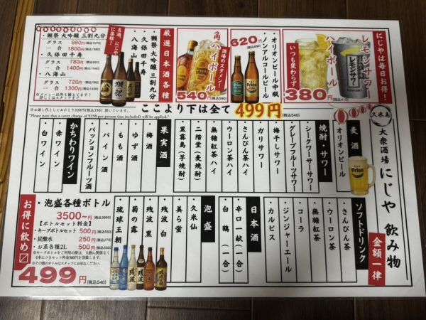 また、にじやさんでは開店から18時までの間をハッピーアワーとしていて、