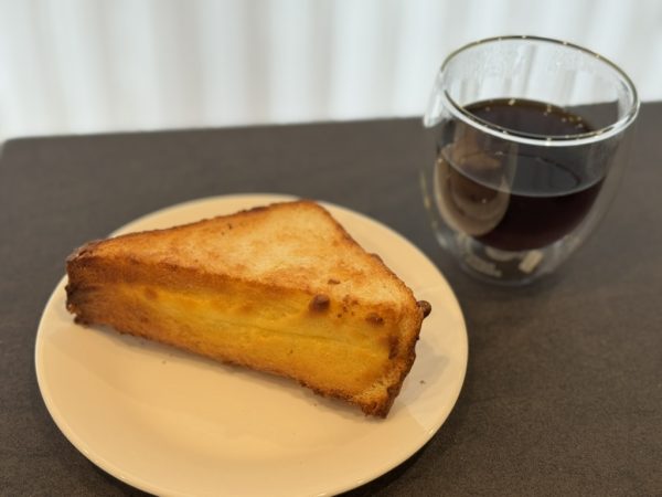 分厚い食パンをサンドイッチ風にカットされていて、この形状が三角だからかトライアングルというようです。