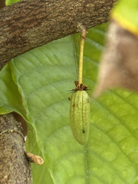 そして、ついに最近カカオの木に小さいながらも実がつきはじめました。