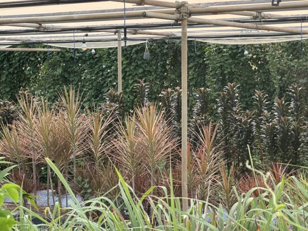 現在、仲地さんの畑で育てているのは、バタフライピー、切葉用の植物、カカオです。