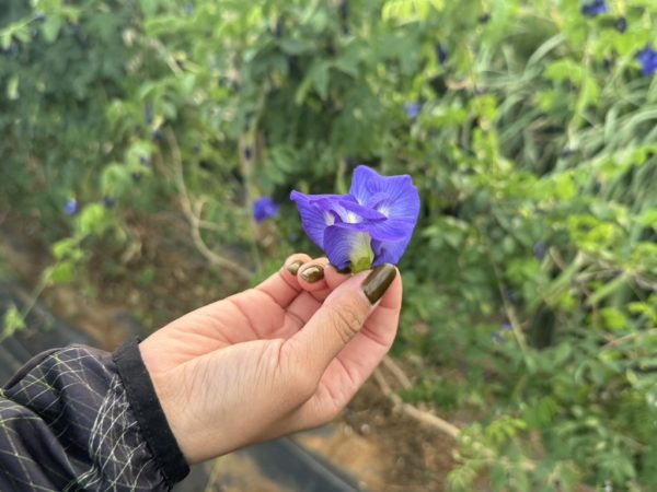 実際にバタフライピーとカカオの葉を混ぜたお茶「瑠璃おとめ」の商品化に成功しました。