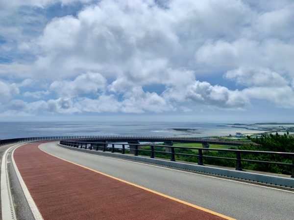 コース:くめじまーるcafe=(さとうきび畑)=黒石の森(阿嘉黒石林道)=てぃーだ橋・つむぎ橋=(ゆいまーる館通過)=くめじまーるcafe