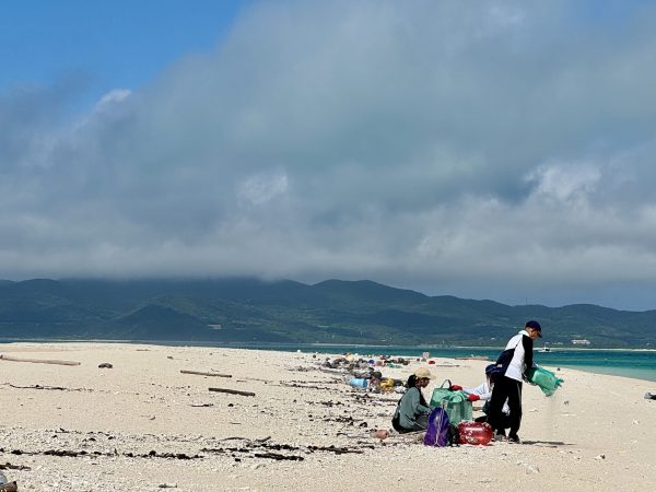 久米島では、観光シーズンに入る前に、はての浜のビーチクリーン活動を行っています。